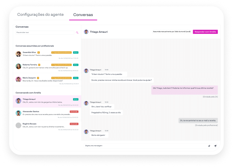 Não. A Amélia atua como apoio operacional, automatizando confirmações e agendamentos repetitivos para liberar a equipe para outras atividades e casos que demandam atendimento humano.